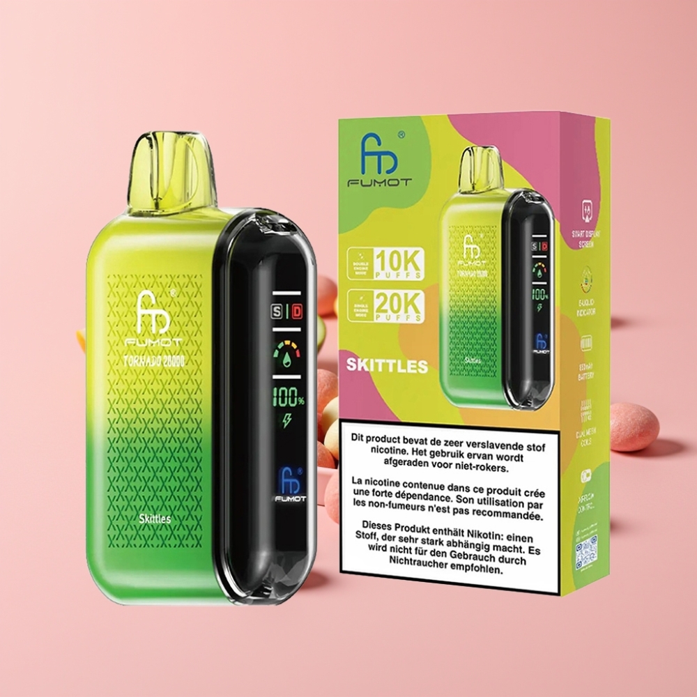 Fumot Tornado 20000 Пуфса Двойна Мрежова Намотка 20ml Е-течност 850mAh Батерия Вкус:Скитлс
